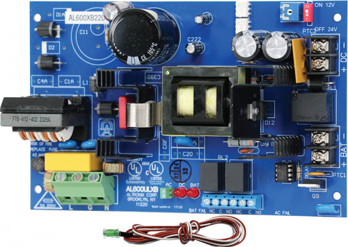 Altronix AL600RLBV power supply/charger converts a 220VAC, 50/60Hz input into a single 12VDC or 24VDC output. It also offers a suite of features that includes AC fail supervision, battery presence, and low battery supervision. Includes LED cable assembly and LED lens.